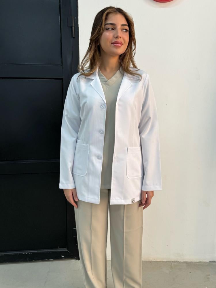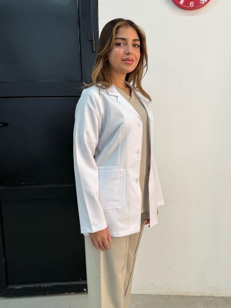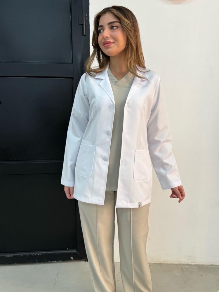 من متجر المعطف للملابس الطبية وفرنا لك لاب كوت ابيض يجمع بين الأناقة والعملية عشان يخدمك يومياً بكل راحة وثقة.